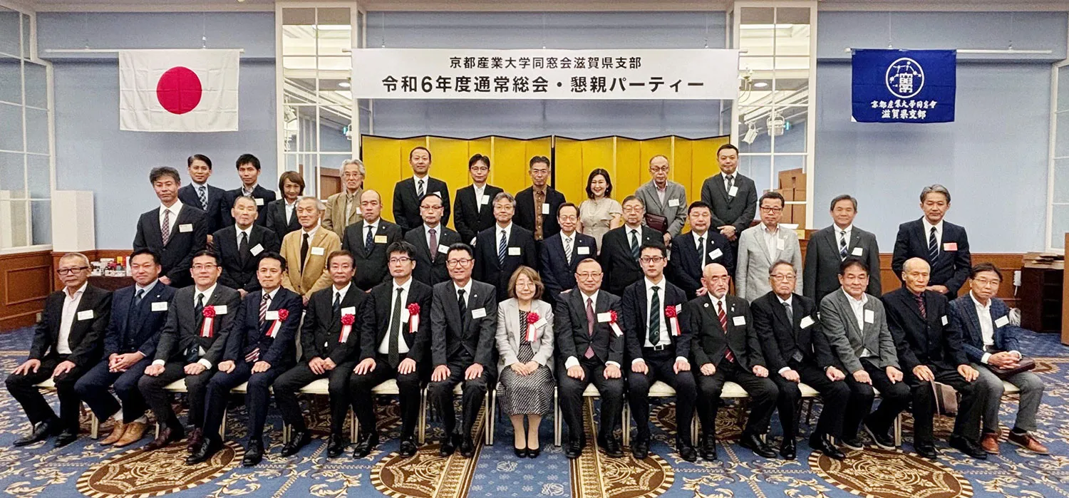 盛り上がりと言えば、京都産業大学同窓会滋賀県支部も盛り上がっています。昨年10月20日には、学長に就任されたばかりの在間敬子学長始め同窓会本部や近隣府県各支部の役員や支部長にご臨席賜り滋賀県支部総会・懇親会を開催いたしました。毎年参加くださる方や新たに参加くださった方もあり和やかな交流の場となり京都産業大学identityを再確認しました。滋賀県支部の活動も今まで以上に活発に活動してまいりたいと考えています。今年の支部総会・懇親会は10月12日㈰に開催を予定しています。詳細は本誌の支部総会の特設ページで掲載されていますので、ご確認いただき是非とも同窓生をお誘いの上ご参加ください。同じ大学で学び各界の第一線でご活躍の卒業生とお酒を酌み交わし、学生時代の思い出話に花咲かせ、新たなつながりに感謝し久しぶりに会える喜びを一緒に感じませんか!皆さまのご参加をお待ちしております。
