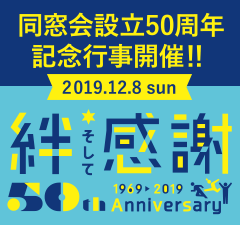 この節目の年に「絆、そして感謝」をテーマに式典等の記念行事を開催すべく、現在準備を進めており、一人でも多くの卒業生にご参加いただけるよう「同窓会設立50周年記念行事」特設サイトを開設いたしました。